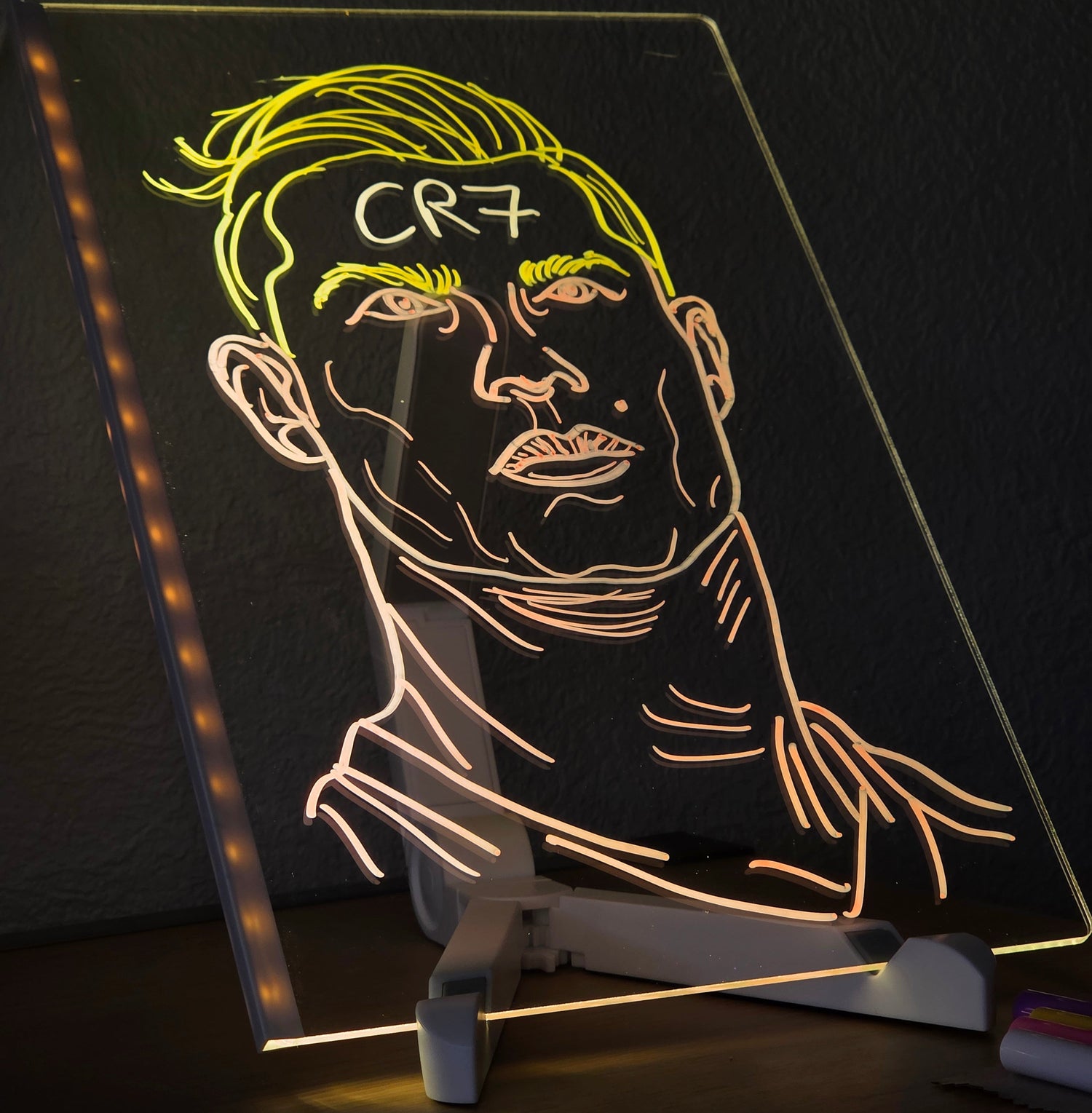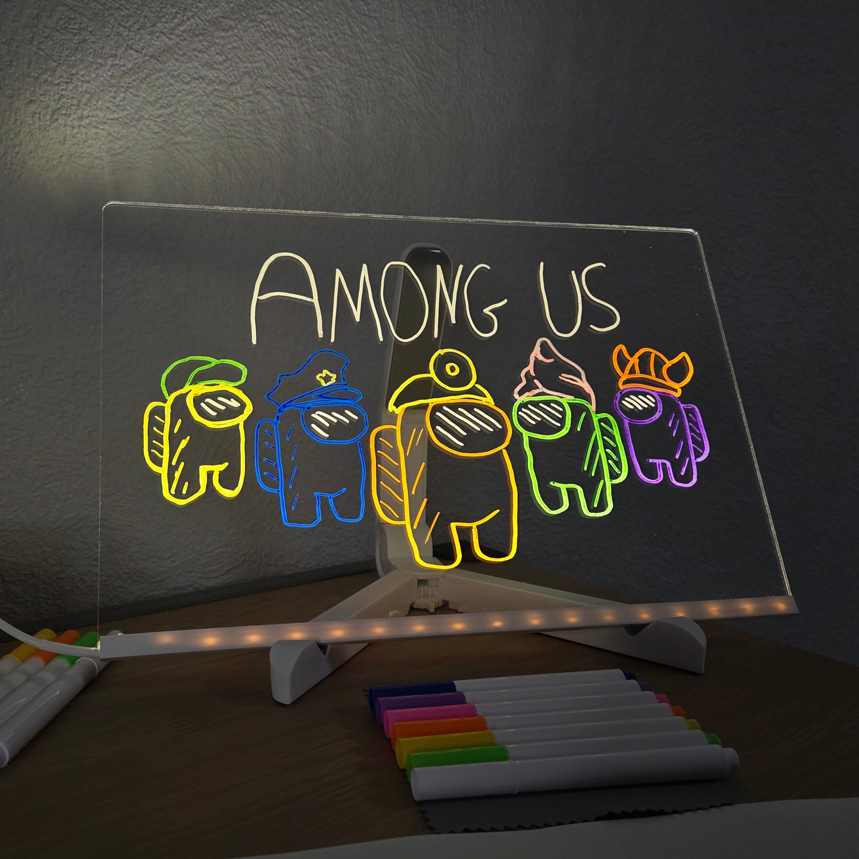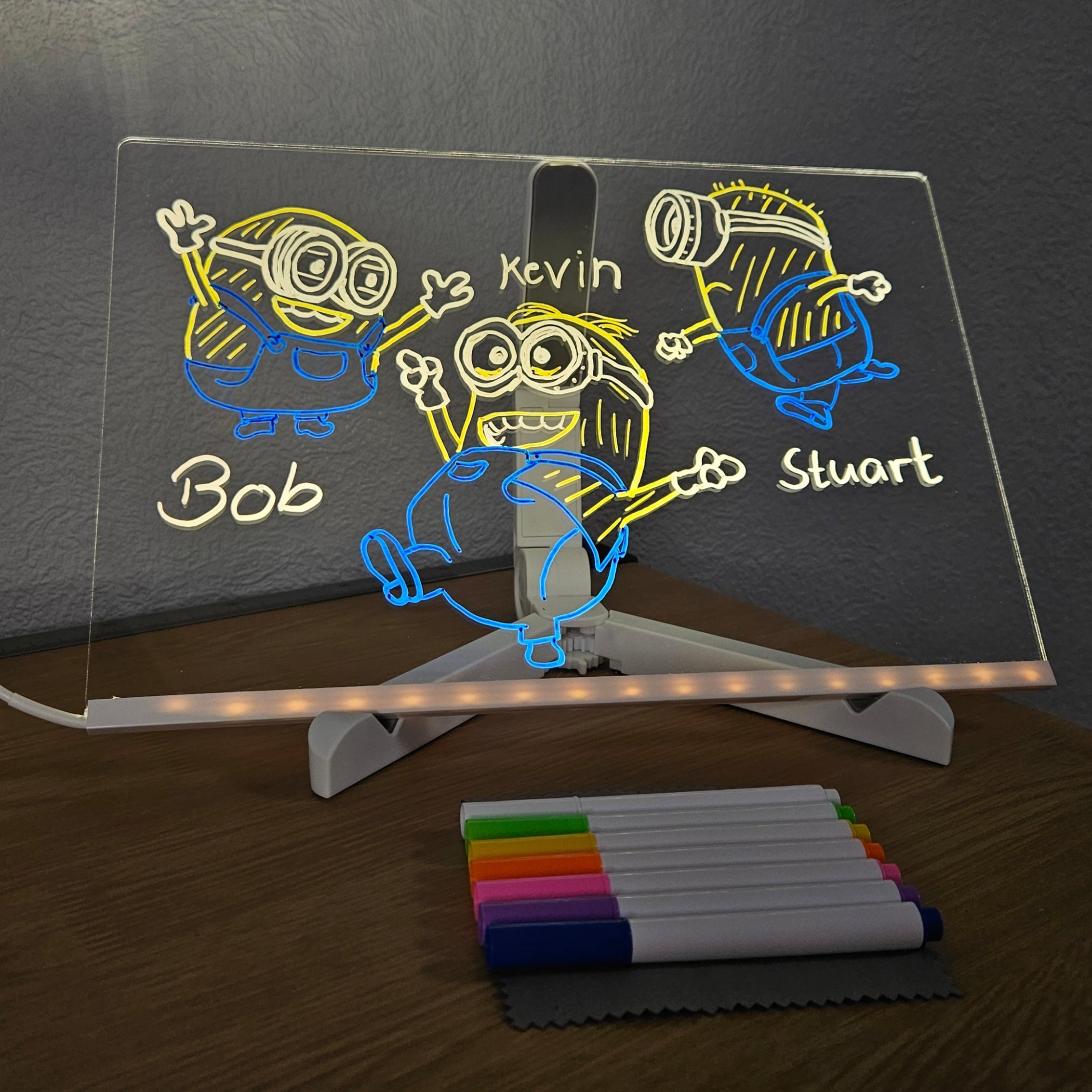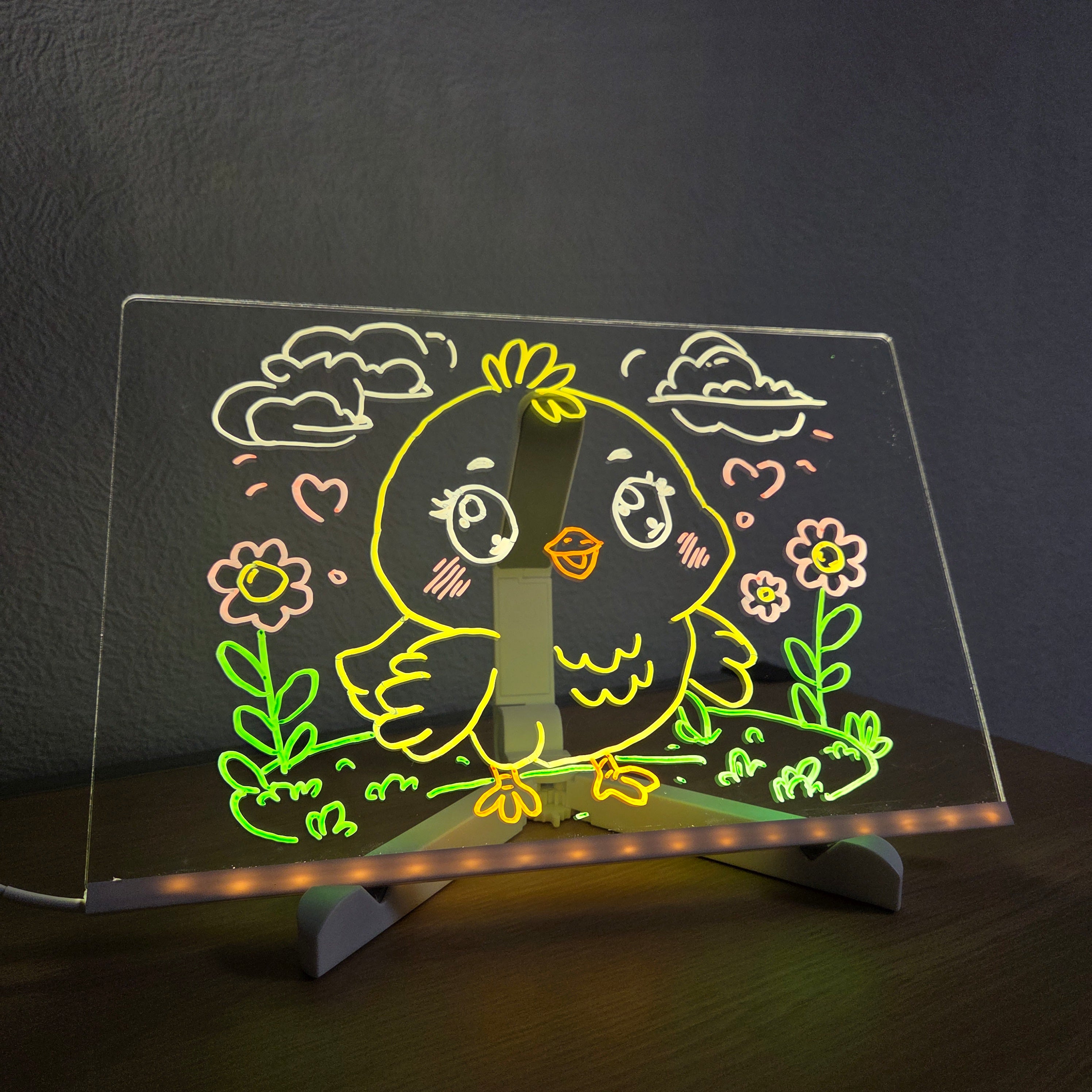 Einfach den USB-Stecker mit einem Netzteil oder einer Powerbank verbinden – und das Board leuchtet sofort auf. Mit den beiliegenden Neon-Stiften können Kinder direkt loslegen. Zum Reinigen genügt ein weiches, trockenes Tuch.